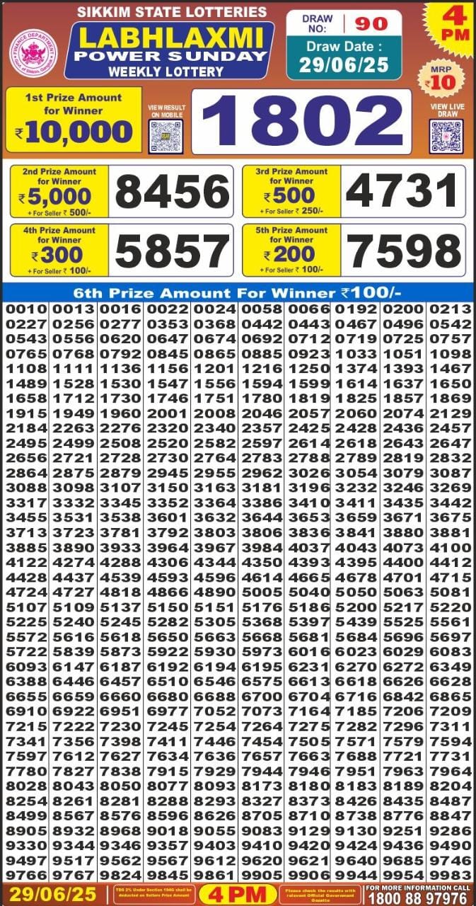 LabhLaxmi power weekly 4PM Result 29.06.2025