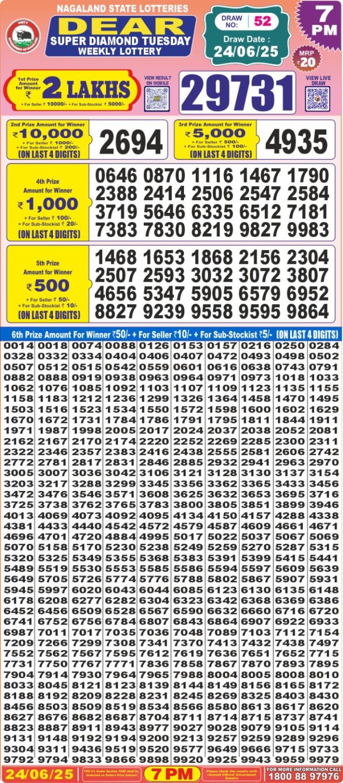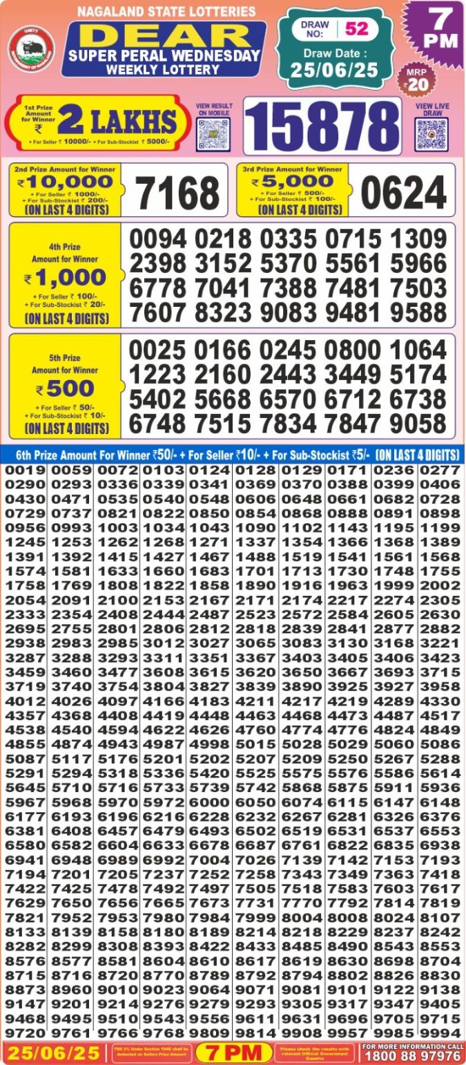 Dear Super Peral Lottery 7pm result 25.06.2025