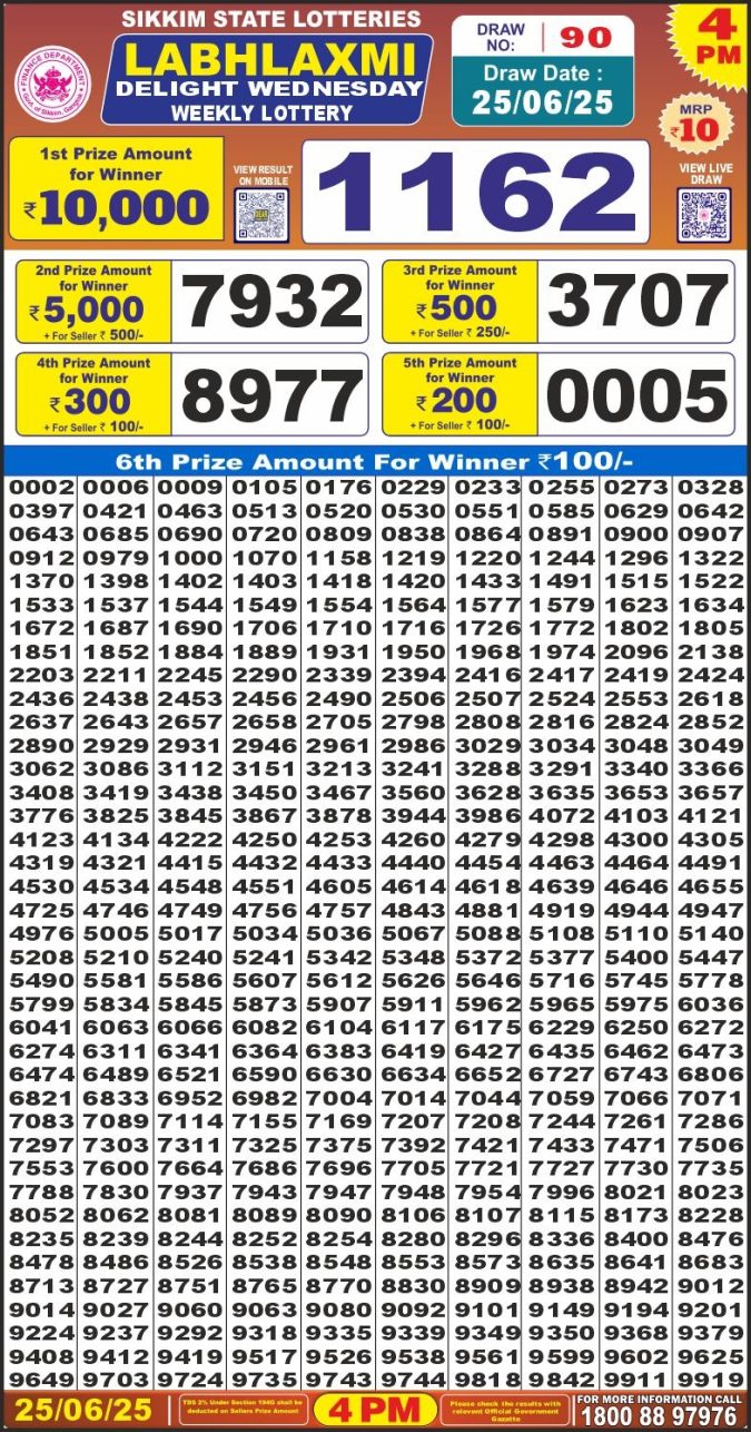 Labh Laxmi Delight weekly Lottery 4PM Result 25.06.2025