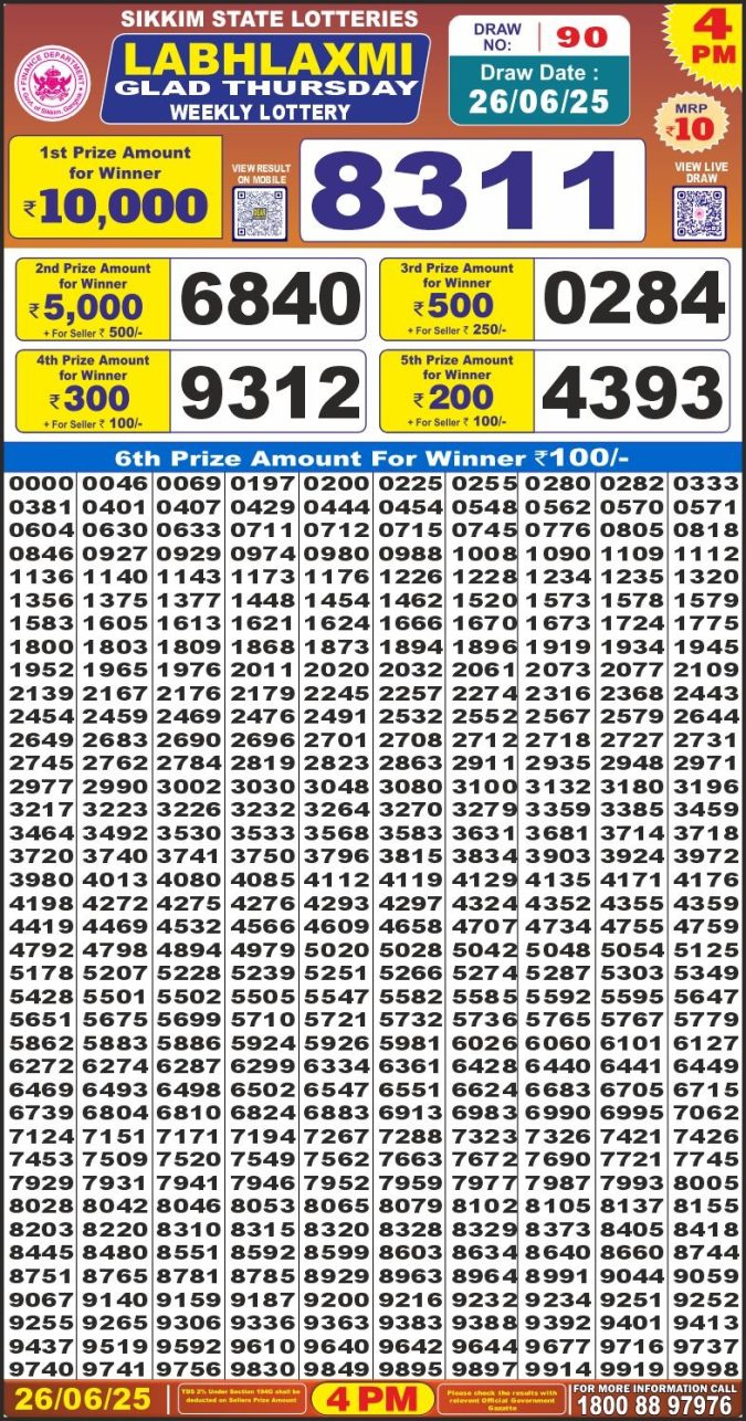Labh Laxmi Glad weekly 4PM Result 26.06.2025