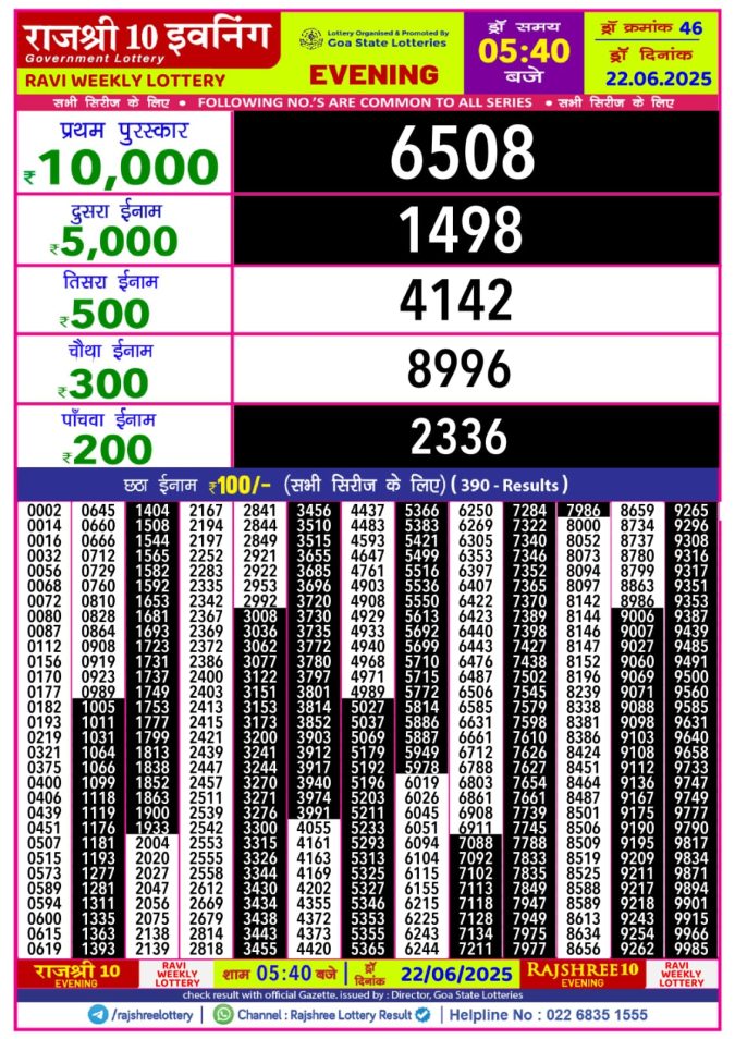 Rajshree 10 evening tuesday 5:40pm result 24.06.2025