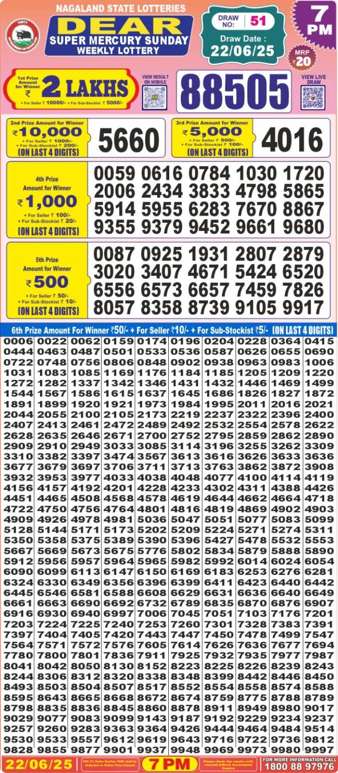 Dear super mercury 7pm result 22.06.2025
