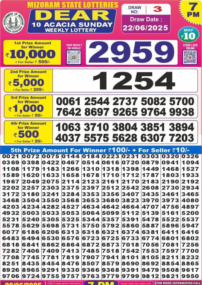 Dear 10 wonder 7pm result 22.06.2025