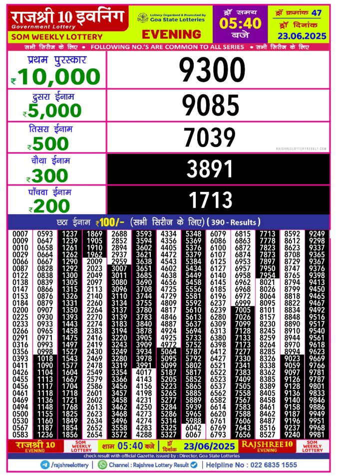 Rajshree 10 evening monday 5:40pm result 23.06.2025