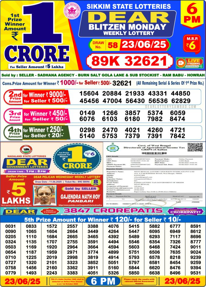 Dear blitzen monday weekly 6PM Result 23.06.2025