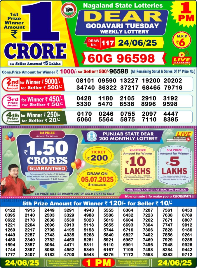 Dear godavari tuesday Weekly 1pm result 24.06.2025