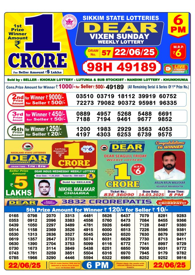 Dear vixen sunday weekly 6PM Result 22.06.2025