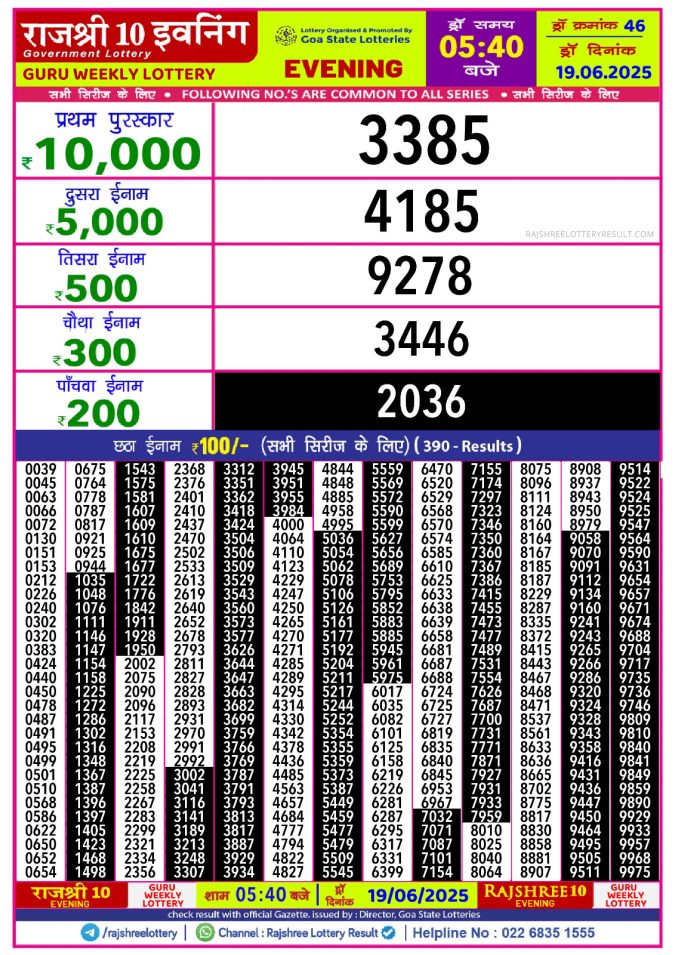 Rajshree 10 evening Thursday 5:40pm result 19.06.2025
