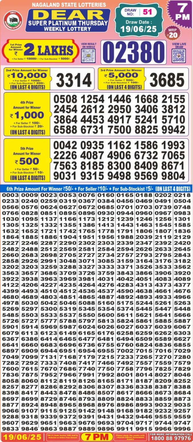 Dear Super Peral Lottery 7pm result 19.06.2025