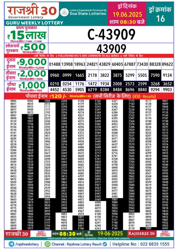Rajshree 200 Monthly Lottery Result 19.06.2025