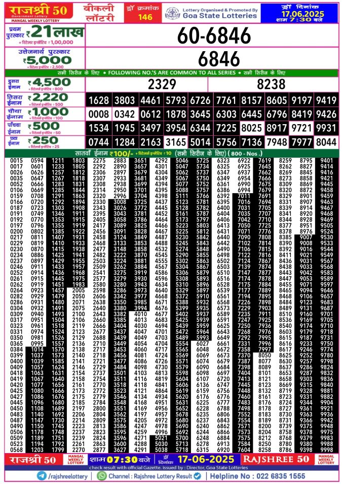 Rajshree 50 Lottery 7:30PM Result 17.06.2025