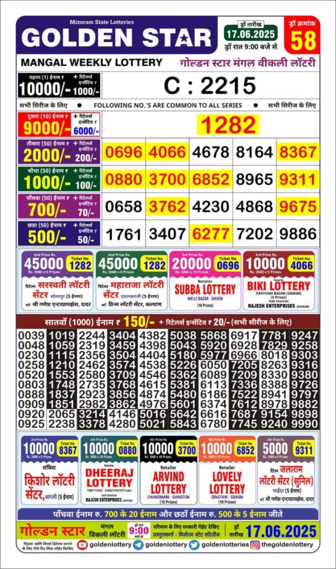 Golden Star weekly Lottery result 9pm 17.06.2025