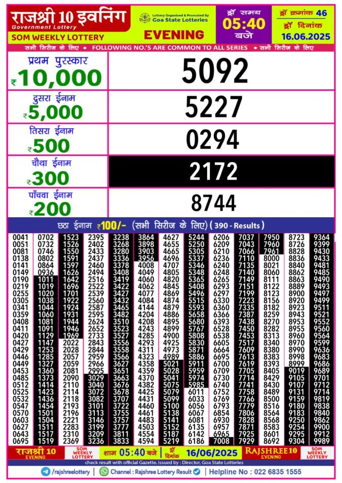 Rajshree 10 evening monday 5:40pm result 16.06.2025