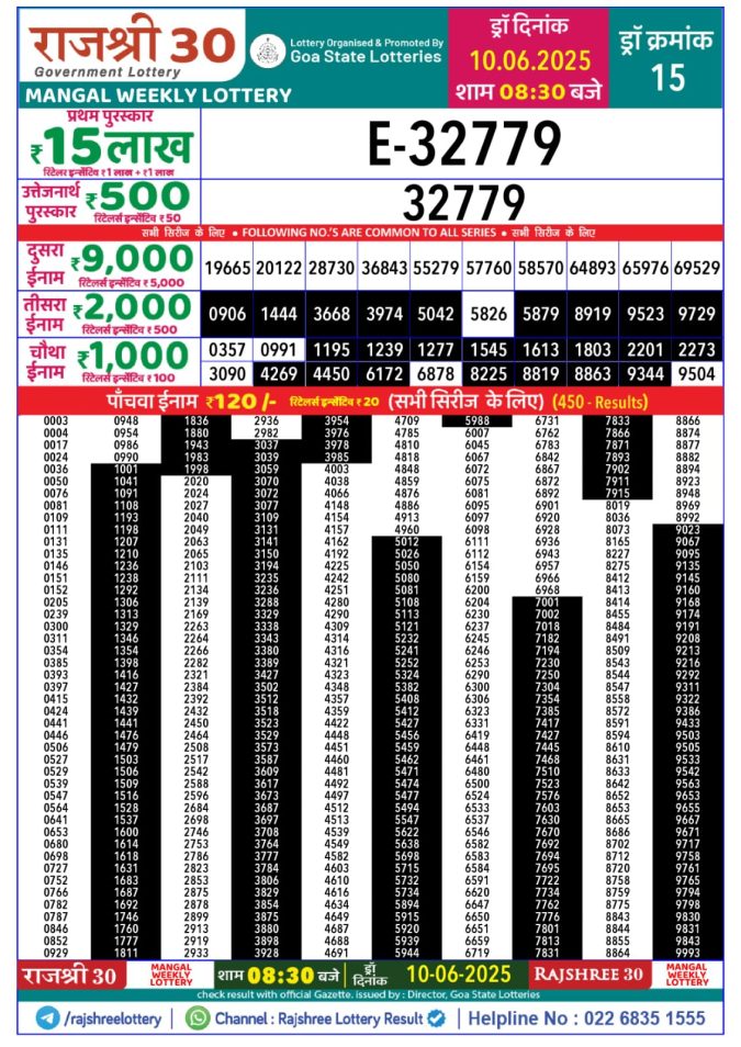 Rajshree 30 Lottery 8:30PM Result 10.06.2025