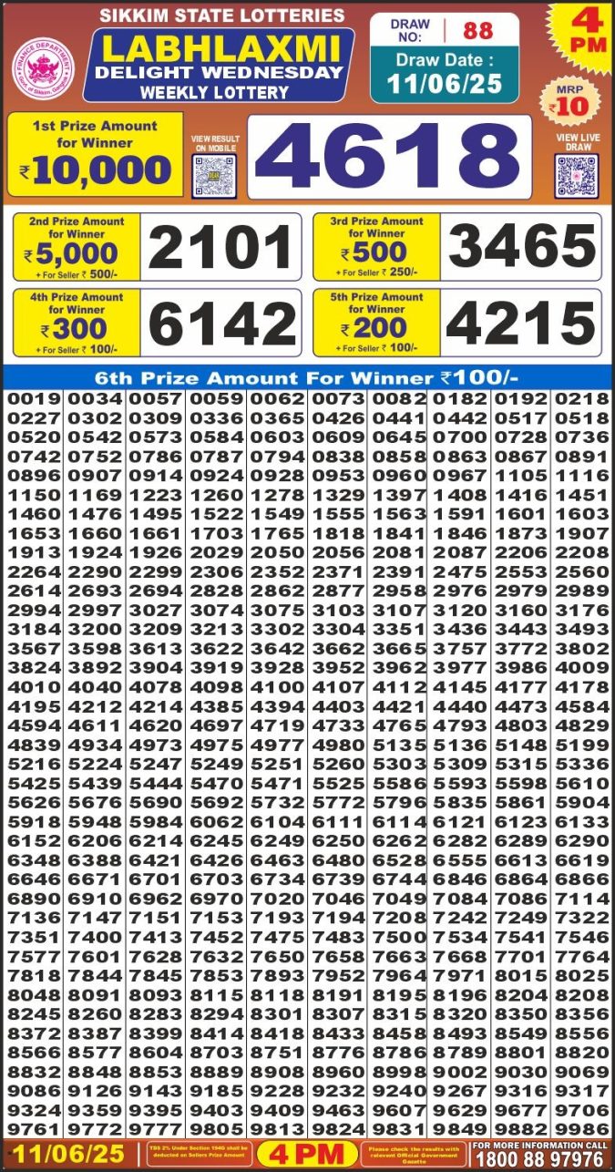 Labh Laxmi Delight weekly Lottery 4PM Result 11.06.2025