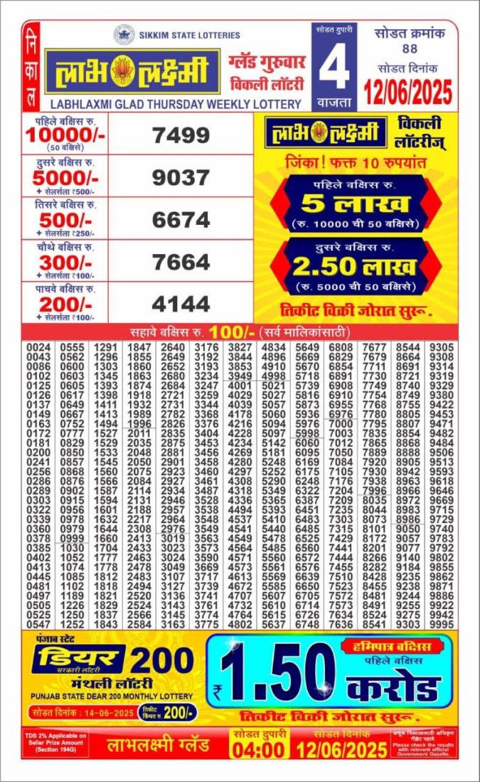 Labh Laxmi Glad weekly 4PM Result 12.06.2025