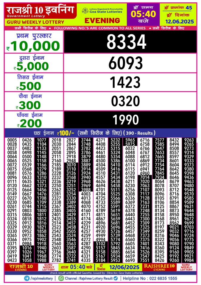 Rajshree 10 evening Thursday 5:40pm result 12.06.2025