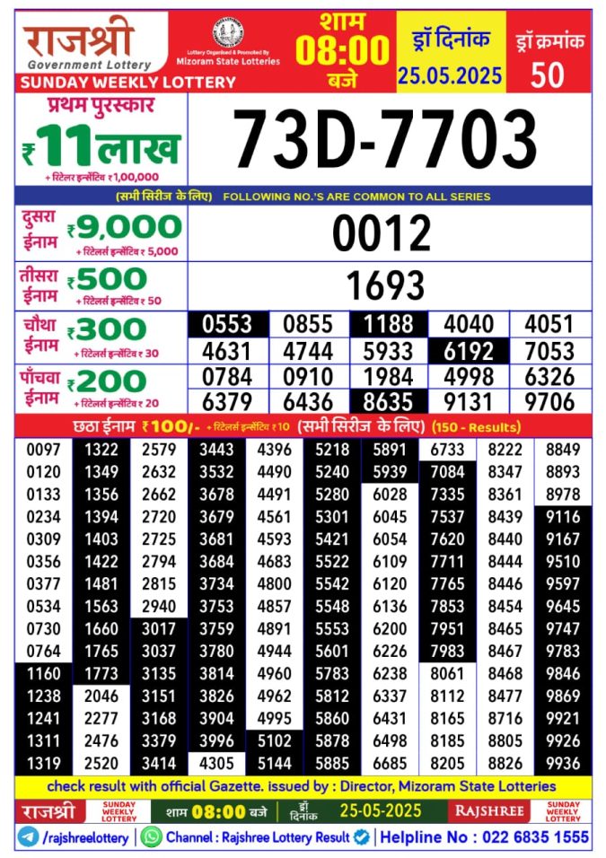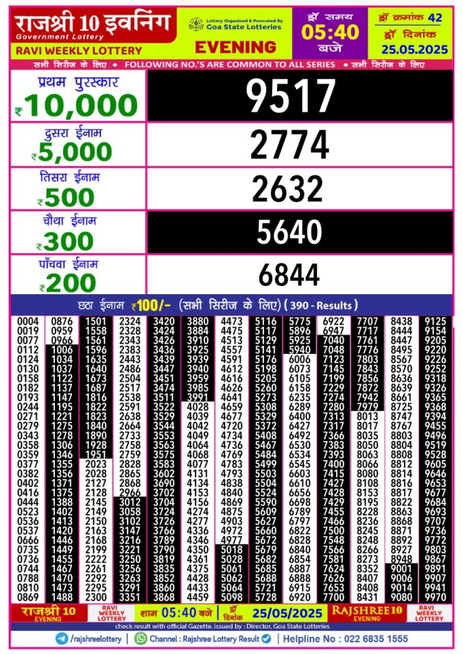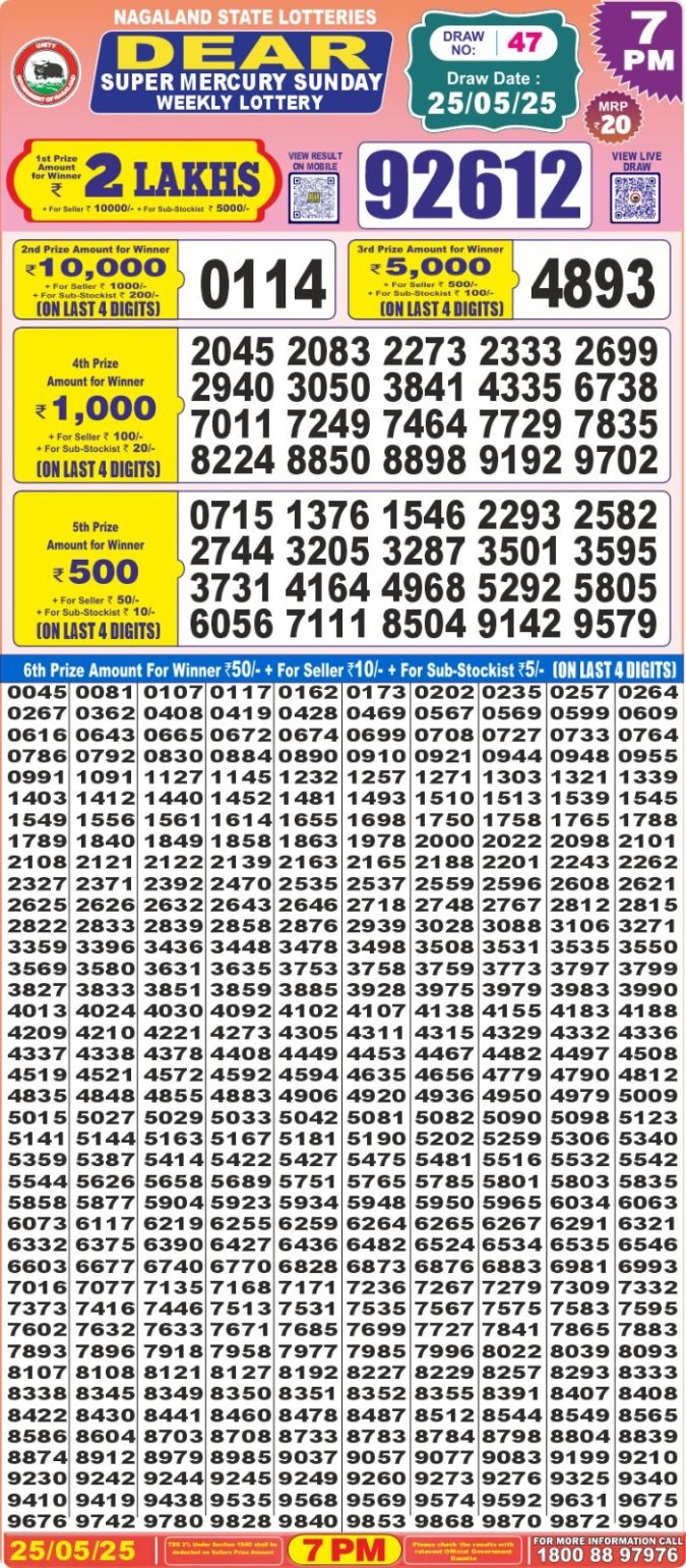 Dear 500 Super Monthly Lottery Result Winner List 24.05.25