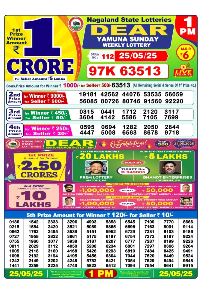 Dear 500 Super Monthly Lottery Result – May 24, 2025 (8 PM) | ₹2.5 Crore Winner Announced…