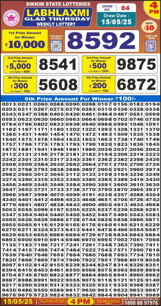 Labh Laxmi Glad weekly 4PM Result 15.5.2025
