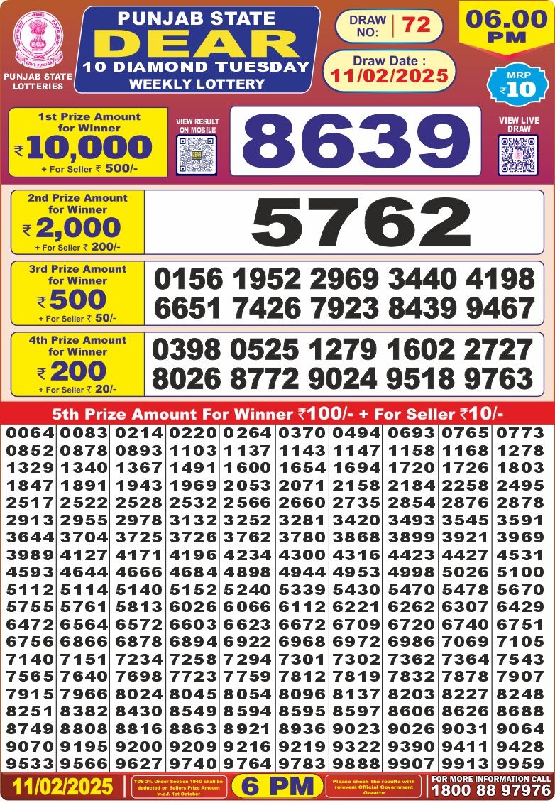 Nagaland State Lotteries was established in the year 1972 under the supervision of the Finance Department to generate a dependable source of revenue for the State Government. Nagaland State Lottery is held every day of the week at three different times of the day, Morning, Day, and Evening. Every day, the lottery is held under a different name with some difference in the prize money with the top prize worth ₹1 Crore (including Super Prize amount). The daily lotteries hosted by Nagaland State include Dear Morning Lottery, Dear Day Lottery, and Dear Evening Lottery which costs 6 Rupees for each ticket.