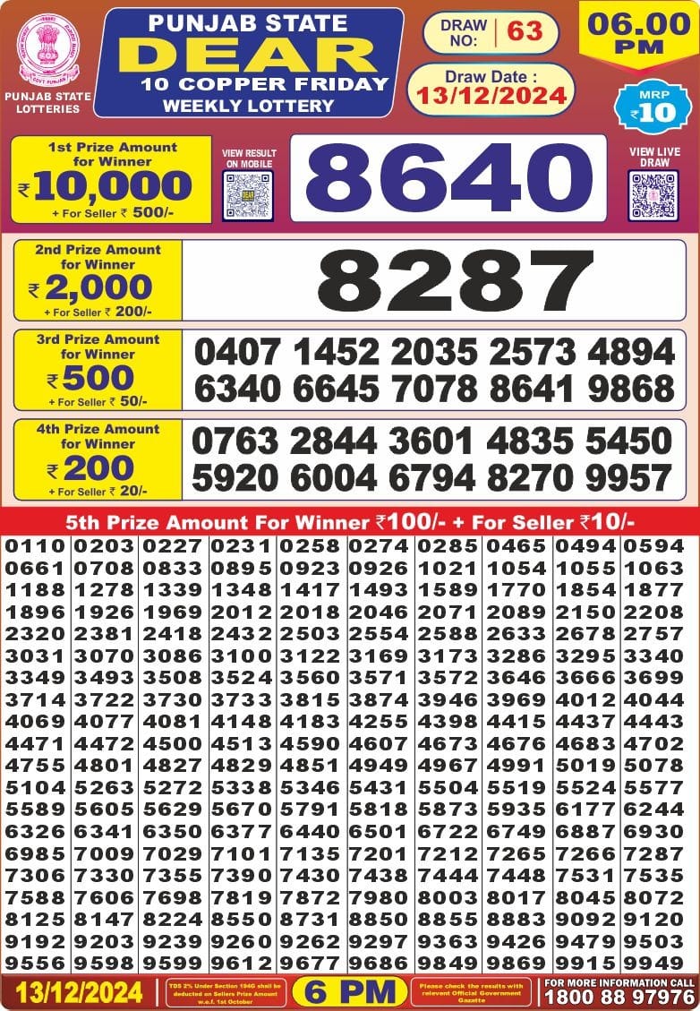 Nagaland State Lotteries was established in the year 1972 under the supervision of the Finance Department to generate a dependable source of revenue for the State Government. Nagaland State Lottery is held every day of the week at three different times of the day, Morning, Day, and Evening. Every day, the lottery is held under a different name with some difference in the prize money with the top prize worth ₹1 Crore (including Super Prize amount). The daily lotteries hosted by Nagaland State include Dear Morning Lottery, Dear Day Lottery, and Dear Evening Lottery which costs 6 Rupees for each ticket.
