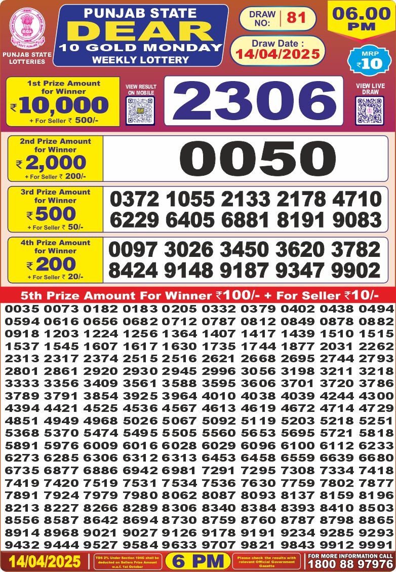Nagaland State Lotteries was established in the year 1972 under the supervision of the Finance Department to generate a dependable source of revenue for the State Government. Nagaland State Lottery is held every day of the week at three different times of the day, Morning, Day, and Evening. Every day, the lottery is held under a different name with some difference in the prize money with the top prize worth ₹1 Crore (including Super Prize amount). The daily lotteries hosted by Nagaland State include Dear Morning Lottery, Dear Day Lottery, and Dear Evening Lottery which costs 6 Rupees for each ticket.