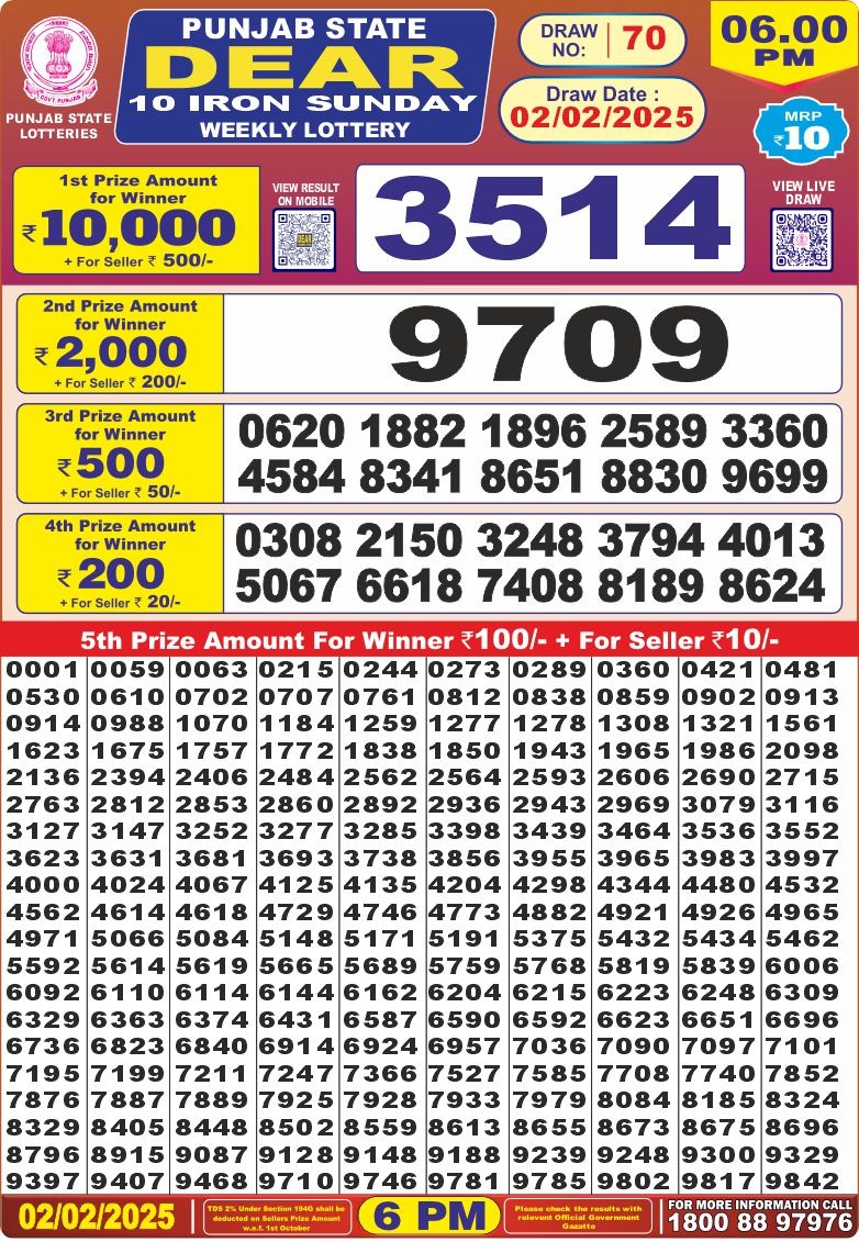 Nagaland State Lotteries was established in the year 1972 under the supervision of the Finance Department to generate a dependable source of revenue for the State Government. Nagaland State Lottery is held every day of the week at three different times of the day, Morning, Day, and Evening. Every day, the lottery is held under a different name with some difference in the prize money with the top prize worth ₹1 Crore (including Super Prize amount). The daily lotteries hosted by Nagaland State include Dear Morning Lottery, Dear Day Lottery, and Dear Evening Lottery which costs 6 Rupees for each ticket.