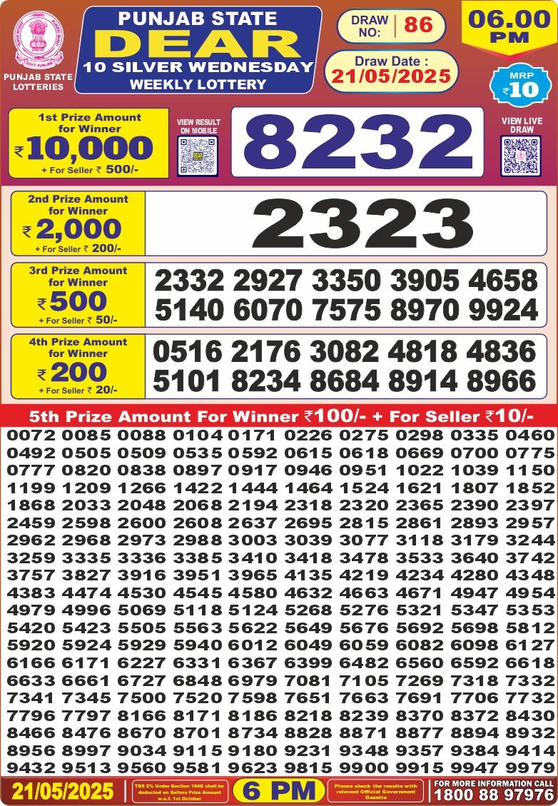 Nagaland State Lotteries was established in the year 1972 under the supervision of the Finance Department to generate a dependable source of revenue for the State Government. Nagaland State Lottery is held every day of the week at three different times of the day, Morning, Day, and Evening. Every day, the lottery is held under a different name with some difference in the prize money with the top prize worth ₹1 Crore (including Super Prize amount). The daily lotteries hosted by Nagaland State include Dear Morning Lottery, Dear Day Lottery, and Dear Evening Lottery which costs 6 Rupees for each ticket.