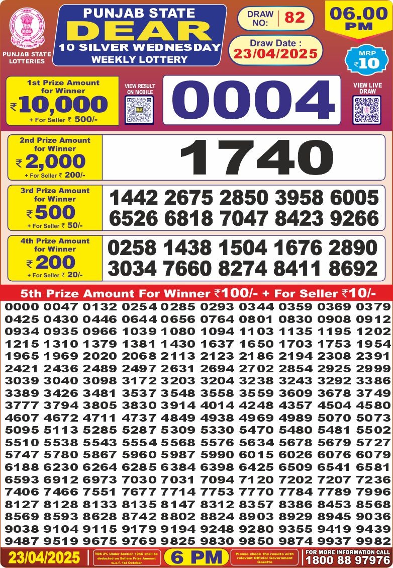 Nagaland State Lotteries was established in the year 1972 under the supervision of the Finance Department to generate a dependable source of revenue for the State Government. Nagaland State Lottery is held every day of the week at three different times of the day, Morning, Day, and Evening. Every day, the lottery is held under a different name with some difference in the prize money with the top prize worth ₹1 Crore (including Super Prize amount). The daily lotteries hosted by Nagaland State include Dear Morning Lottery, Dear Day Lottery, and Dear Evening Lottery which costs 6 Rupees for each ticket.