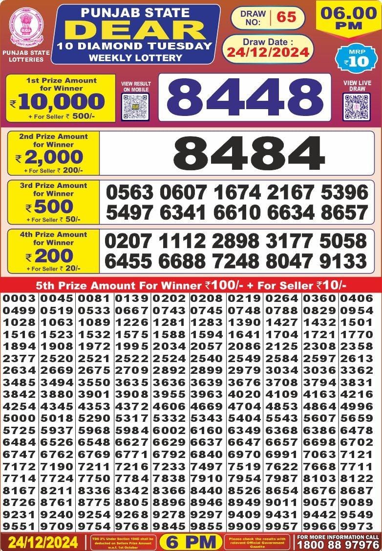 Nagaland State Lotteries was established in the year 1972 under the supervision of the Finance Department to generate a dependable source of revenue for the State Government. Nagaland State Lottery is held every day of the week at three different times of the day, Morning, Day, and Evening. Every day, the lottery is held under a different name with some difference in the prize money with the top prize worth ₹1 Crore (including Super Prize amount). The daily lotteries hosted by Nagaland State include Dear Morning Lottery, Dear Day Lottery, and Dear Evening Lottery which costs 6 Rupees for each ticket.