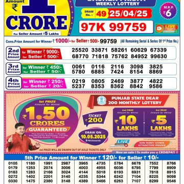Punjab state dear 10 6pm lottery result 24.2.25