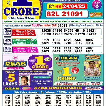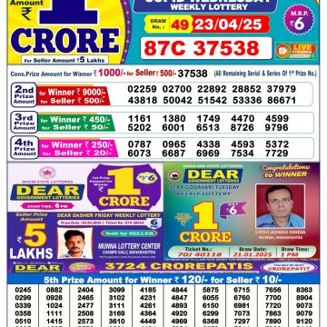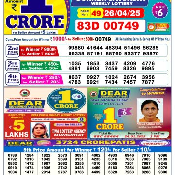 Nagaland State Lotteries was established in the year 1972 under the supervision of the Finance Department to generate a dependable source of revenue for the State Government. Nagaland State Lottery is held every day of the week at three different times of the day, Morning, Day, and Evening. Every day, the lottery is held under a different name with some difference in the prize money with the top prize worth ₹1 Crore (including Super Prize amount). The daily lotteries hosted by Nagaland State include Dear Morning Lottery, Dear Day Lottery, and Dear Evening Lottery which costs 6 Rupees for each ticket.