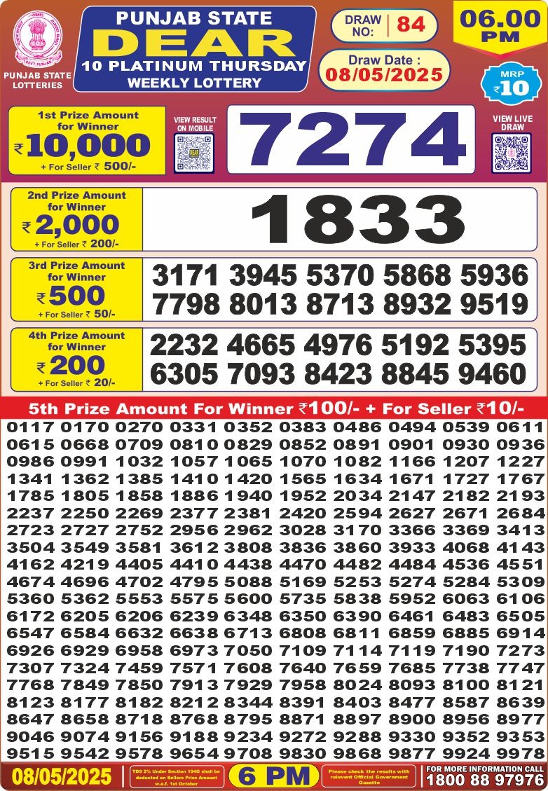 Nagaland State Lotteries was established in the year 1972 under the supervision of the Finance Department to generate a dependable source of revenue for the State Government. Nagaland State Lottery is held every day of the week at three different times of the day, Morning, Day, and Evening. Every day, the lottery is held under a different name with some difference in the prize money with the top prize worth ₹1 Crore (including Super Prize amount). The daily lotteries hosted by Nagaland State include Dear Morning Lottery, Dear Day Lottery, and Dear Evening Lottery which costs 6 Rupees for each ticket.