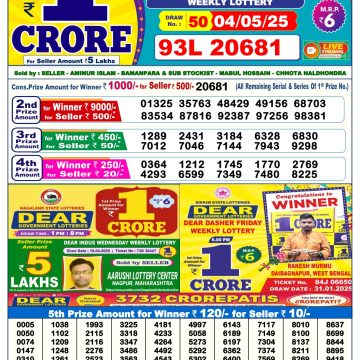 Nagaland State Lotteries was established in the year 1972 under the supervision of the Finance Department to generate a dependable source of revenue for the State Government. Nagaland State Lottery is held every day of the week at three different times of the day, Morning, Day, and Evening. Every day, the lottery is held under a different name with some difference in the prize money with the top prize worth ₹1 Crore (including Super Prize amount). The daily lotteries hosted by Nagaland State include Dear Morning Lottery, Dear Day Lottery, and Dear Evening Lottery which costs 6 Rupees for each ticket.