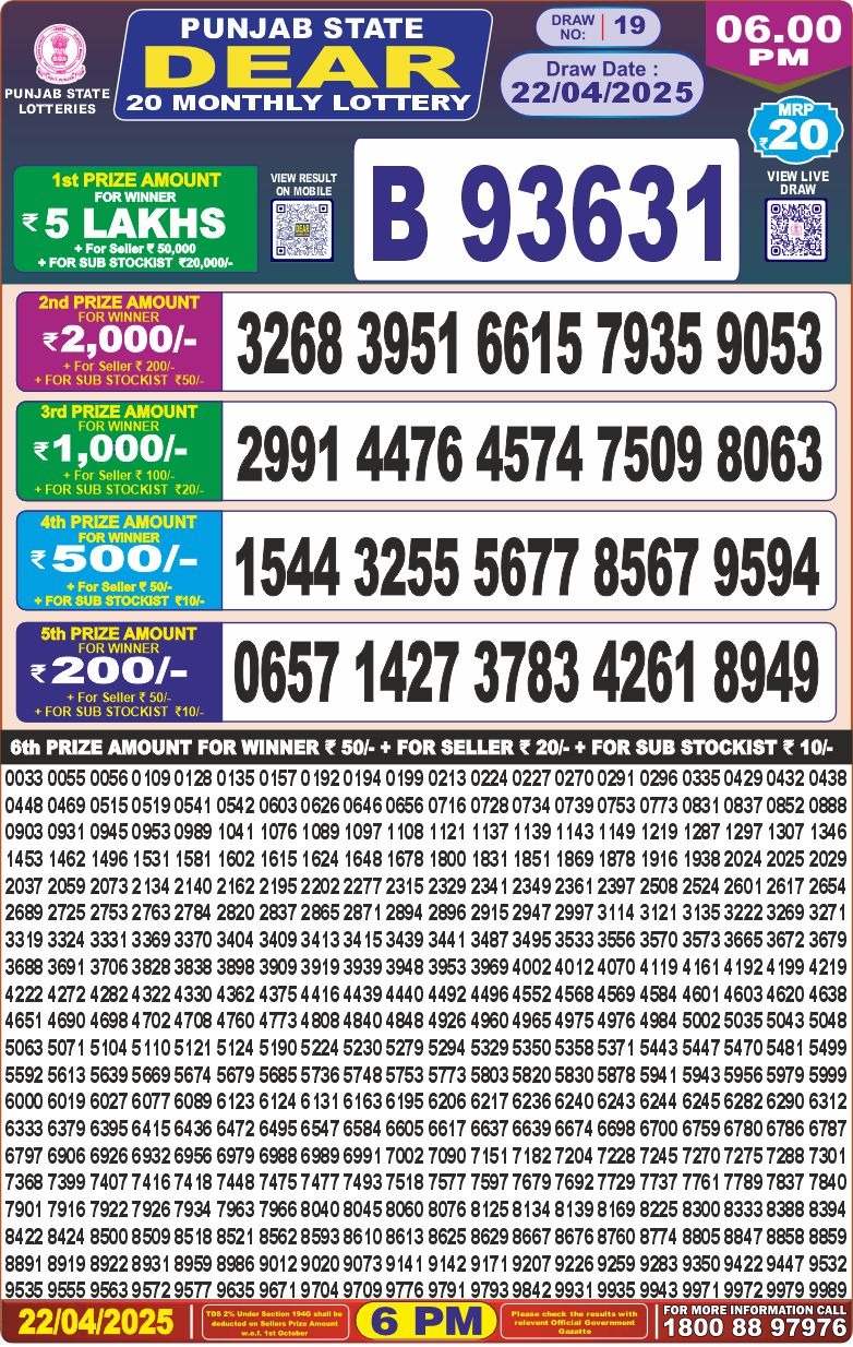 Nagaland State Lotteries was established in the year 1972 under the supervision of the Finance Department to generate a dependable source of revenue for the State Government. Nagaland State Lottery is held every day of the week at three different times of the day, Morning, Day, and Evening. Every day, the lottery is held under a different name with some difference in the prize money with the top prize worth ₹1 Crore (including Super Prize amount). The daily lotteries hosted by Nagaland State include Dear Morning Lottery, Dear Day Lottery, and Dear Evening Lottery which costs 6 Rupees for each ticket.