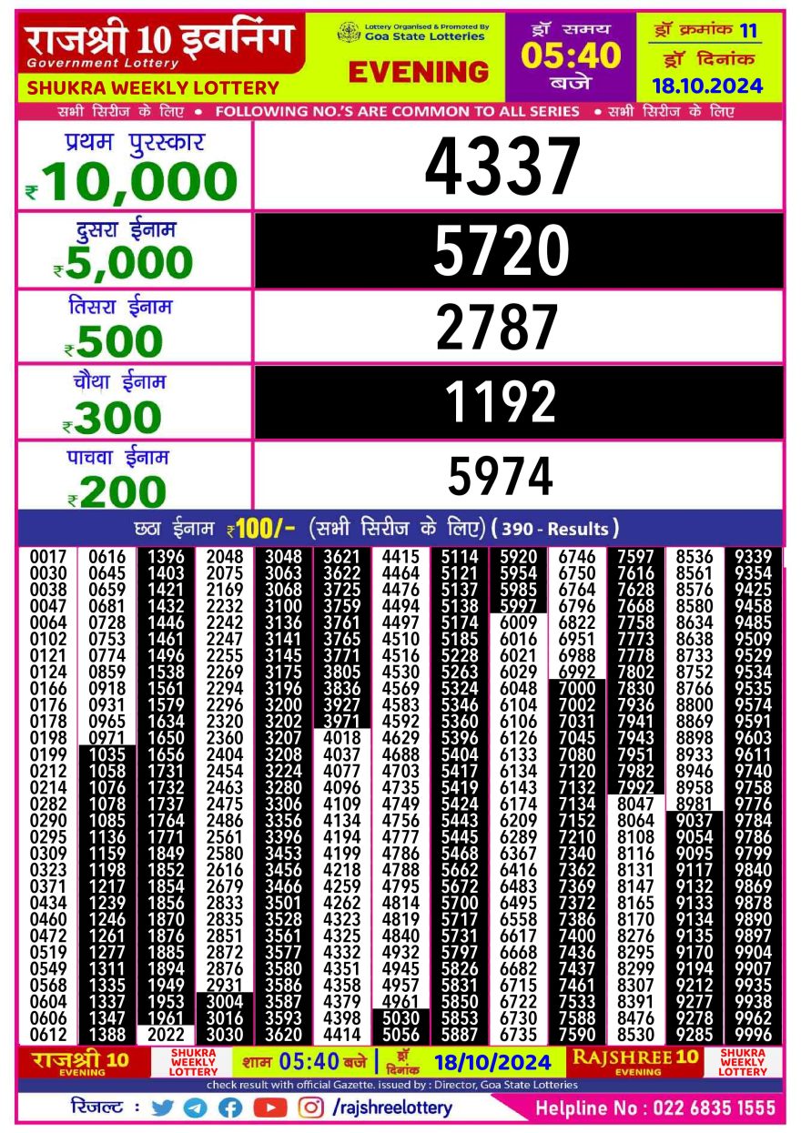 Rajshree 10 evening  friday  5:40pm result 18.10.24