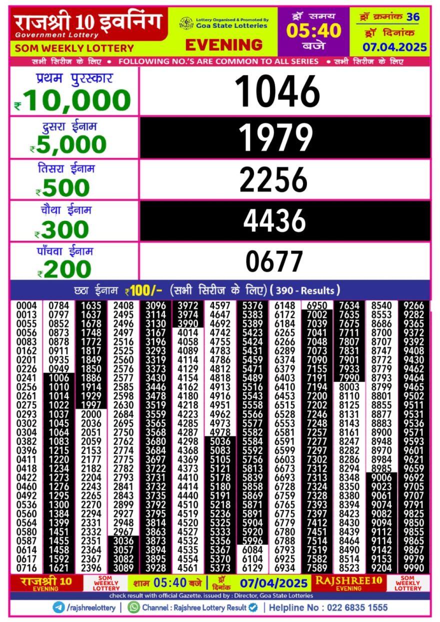 Rajshree 10 evening monday 5:40pm result 7.4.25