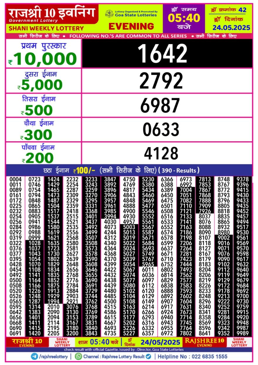 Rajshree 10 evening Saturday 5:40pm result 24.05.25
