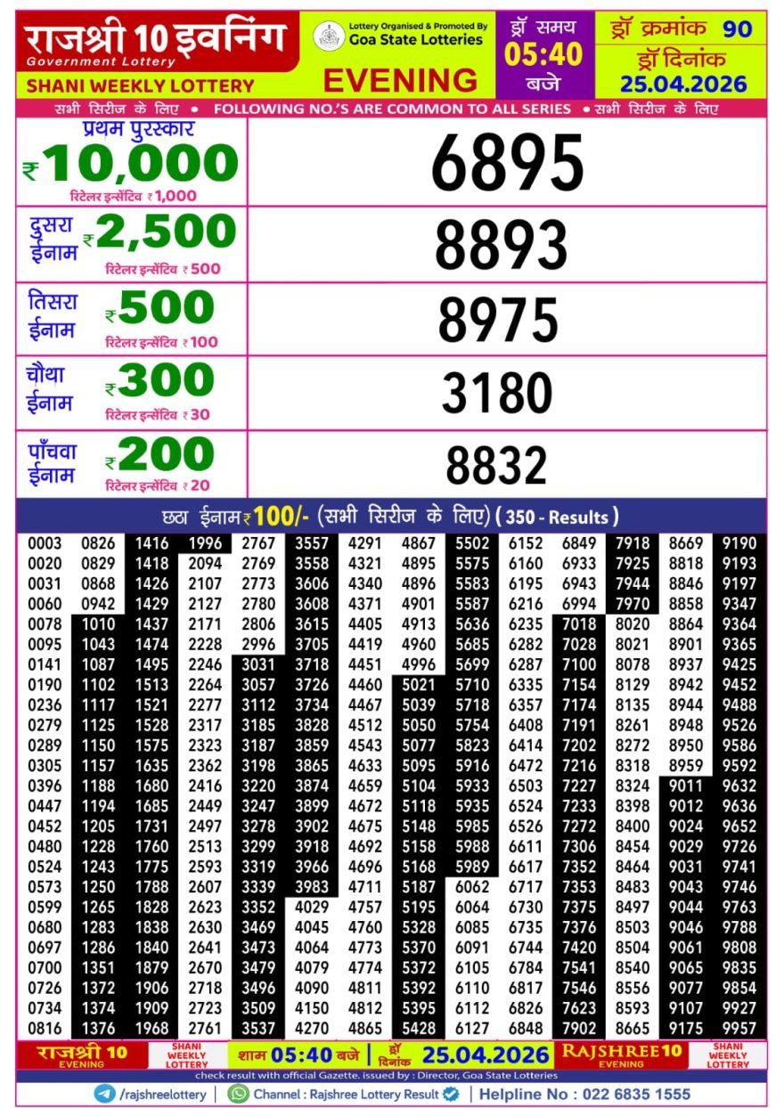 Rajshree 10 Evening Saturday 5:40pm Result 25.04.2026