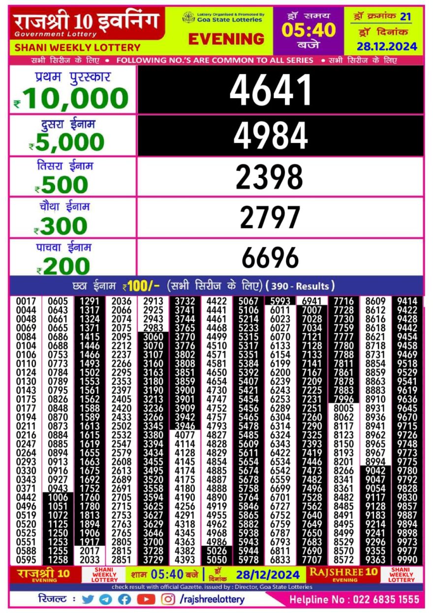 Rajshree 10 evening Saturday 5:40pm result 28.12.24