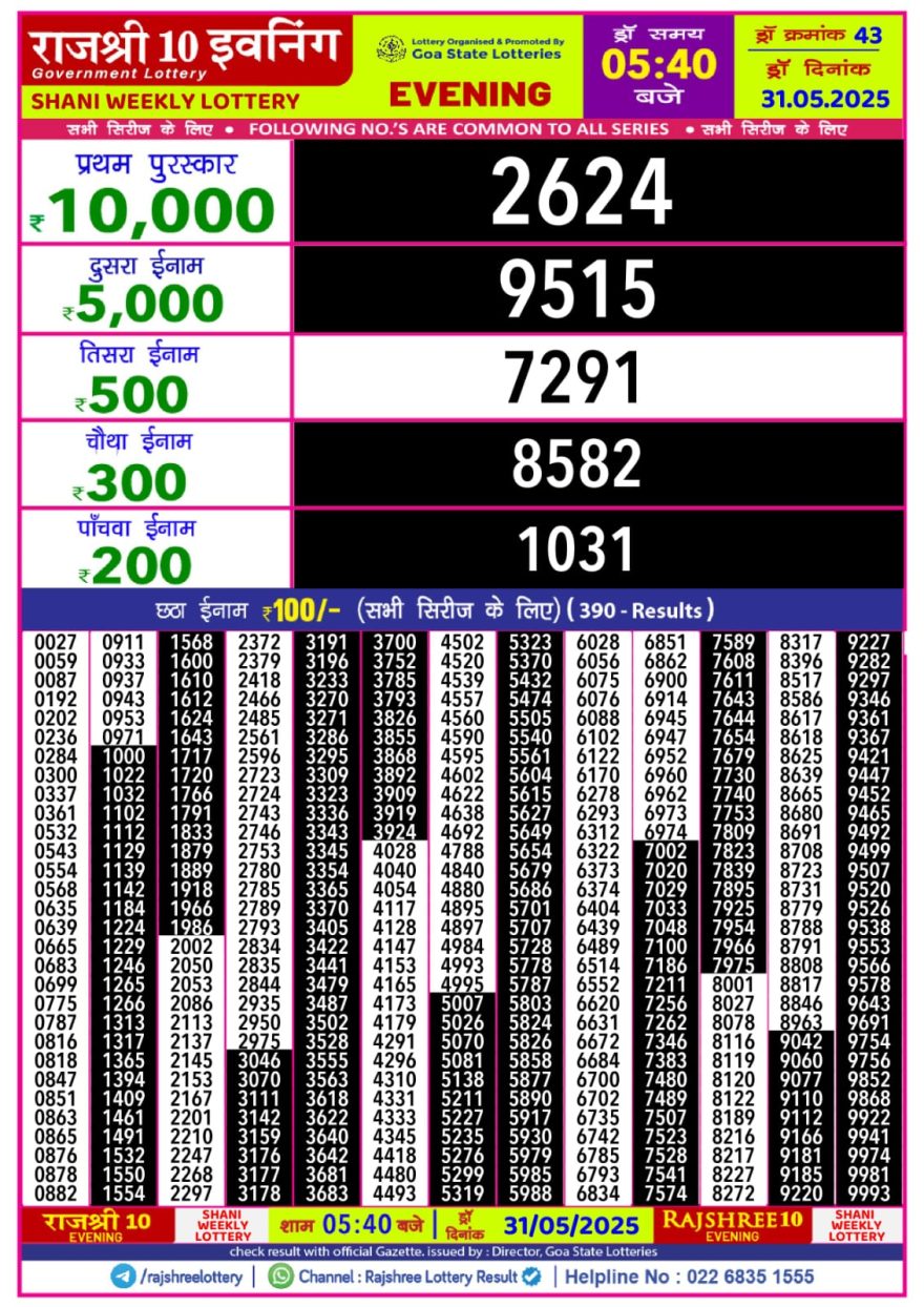 Rajshree 10 evening Saturday 5:40pm result 31.05.25