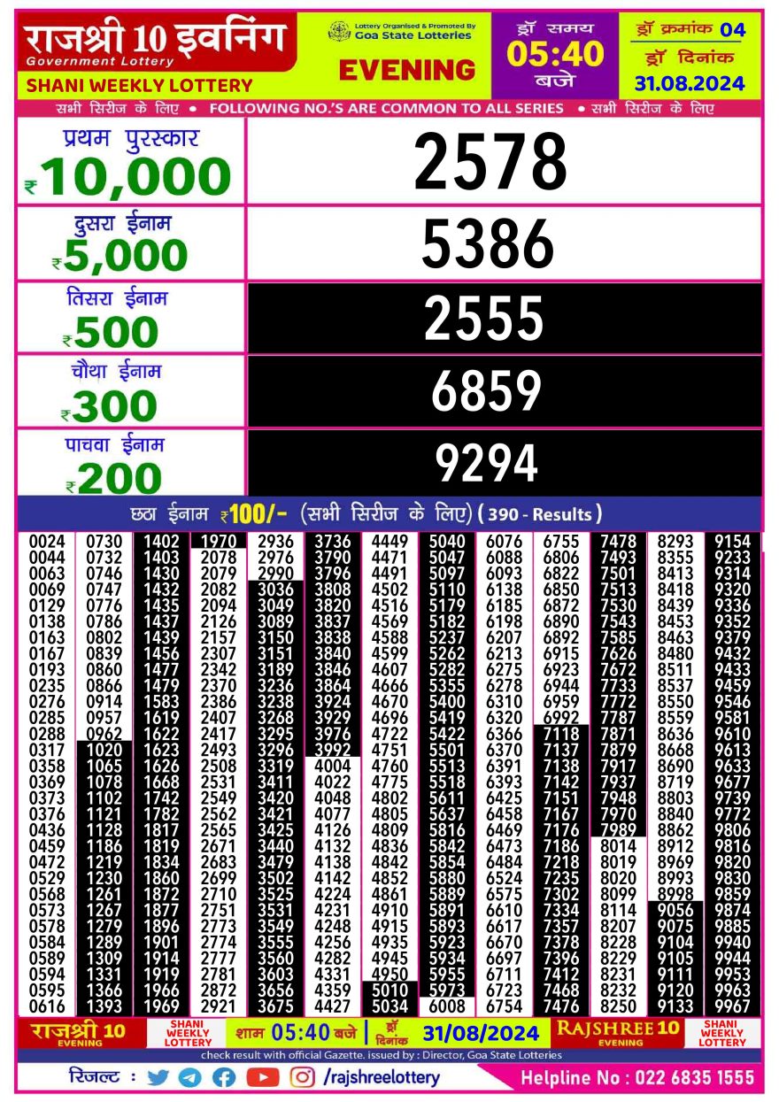 Rajshree 10 evening  saturday  5:40pm result 31.08.24