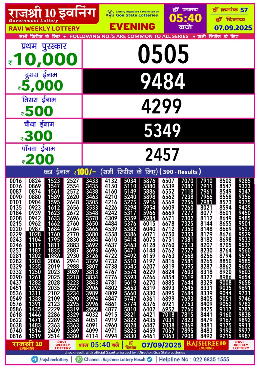 Rajshree 10 Evening Sunday 5:40pm Result 07.09.2025