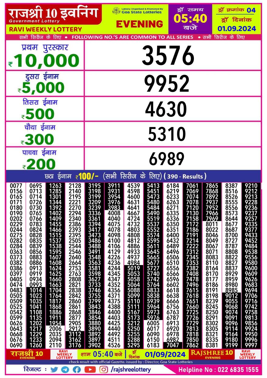 Rajshree 10 evening  sunday  5:40pm result 1.09.24