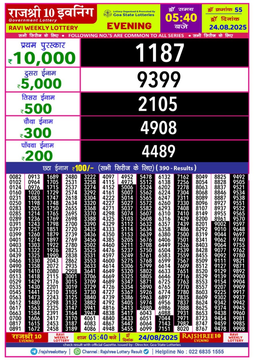 Rajshree 10 Evening Sunday 5:40pm Result 24.08.2025