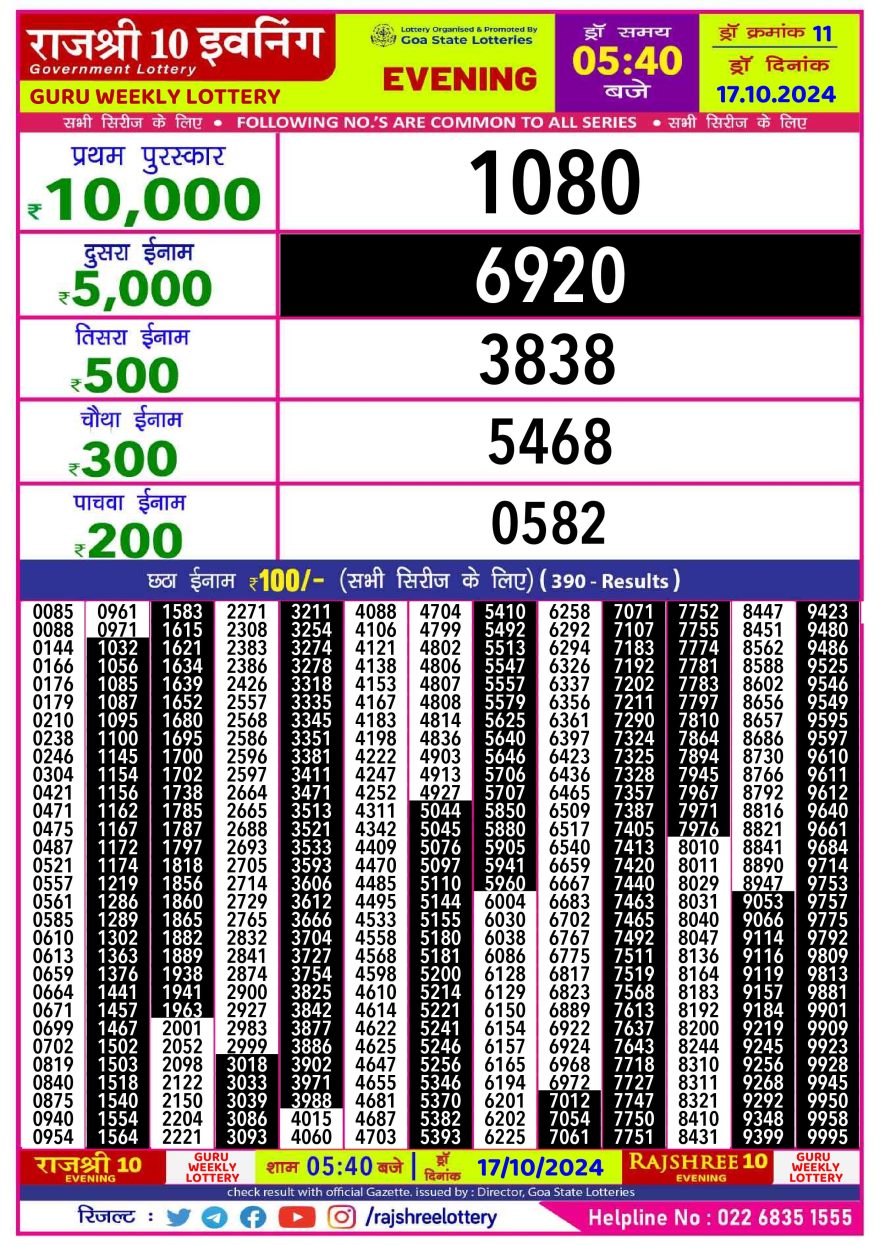 Rajshree 10 evening  thursday  5:40pm result 17.10.24