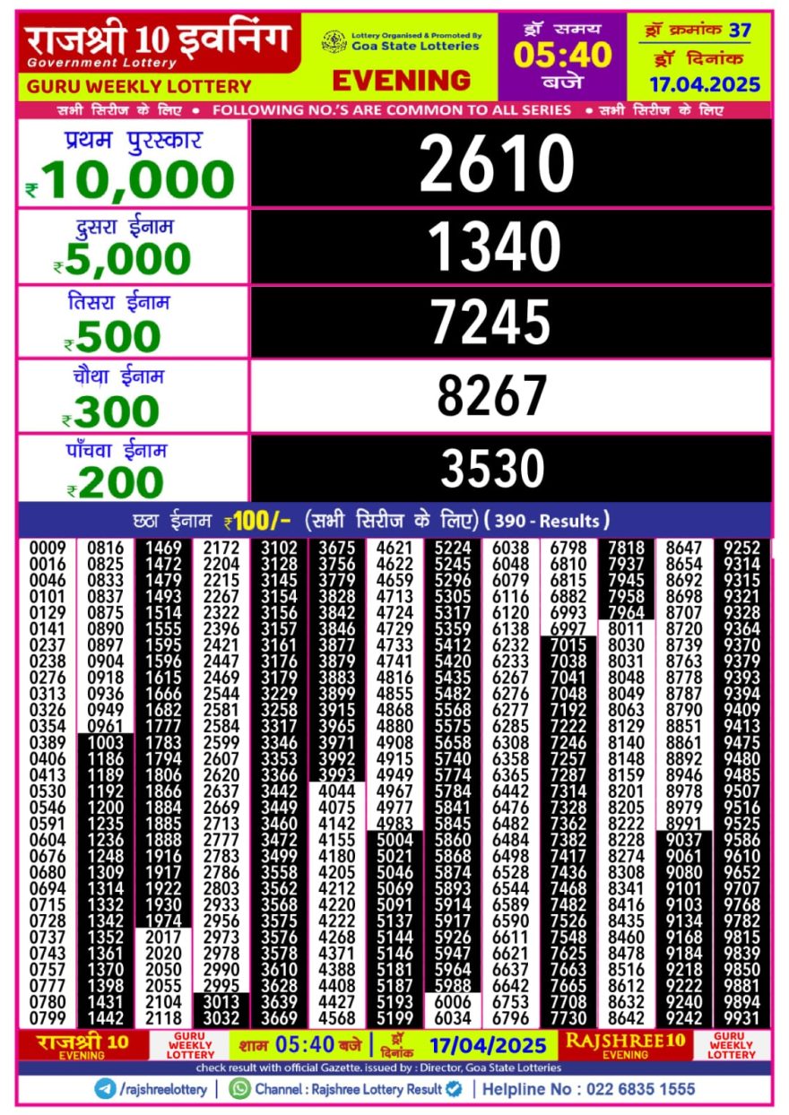 Rajshree 10 evening Thursday 5:40pm result 17.4.25