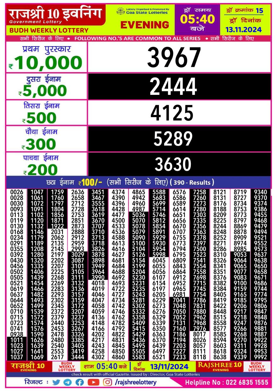 Rajshree 10 evening wednesday  5:40pm result 13.11.24