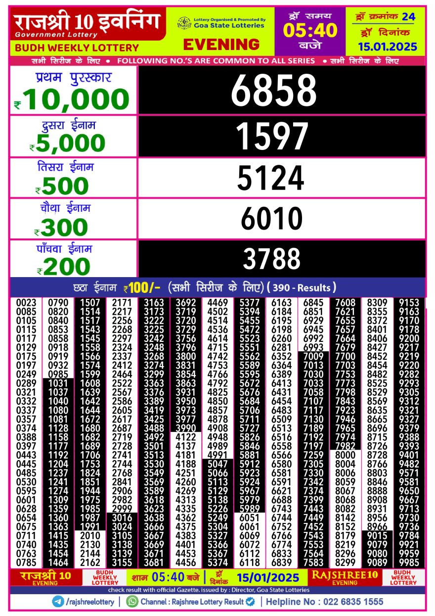 Rajshree 10 evening Wednesday 5:40pm result 15.1.25
